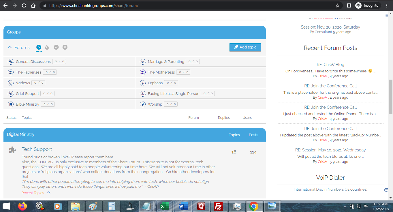 I laughed out loud when I saw the blunt note I wrote on the Tech Support forum … I wrote that because I got multiple “demands” from people who professed to be Christians into getting me to build or fix their website for free (as you see from these screenshotting-a-thon, it requires time, money (because if I volunteer, it means I can’t do or bill for actual tech work), expertise and was getting “guilted” (more like their manipulation attempt).