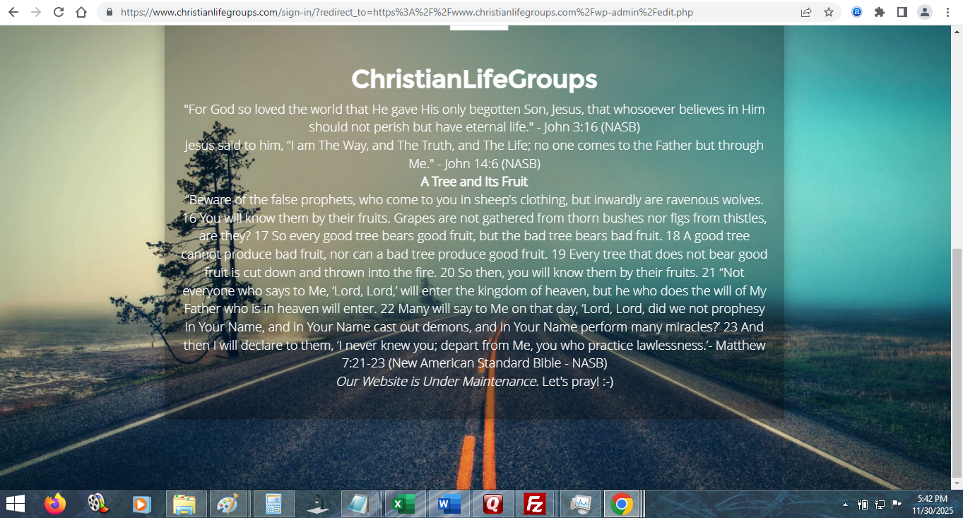 I know in my heart, God protected ChristianLifeGroups.com, with only the techforum part getting switched with a new theme, that the oldwebhost just did (even if in those forums I wrote “DO NOT CLICK ANY UPDATES because it will overwrite all the customizations. I even left notes on the Backend, viewable by text file, I wrote HEY_OLDWEBHOST_READTHIS.